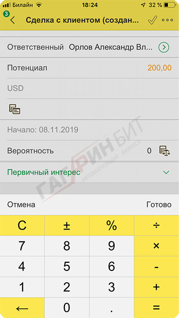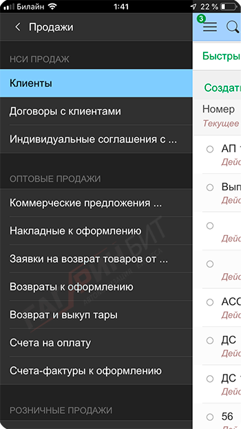 Менеджер в рабочем зале или на выезде, не имея доступа к компьютеру, может оперативно узнать наличие свободного остатка на складе или задолженности клиента.